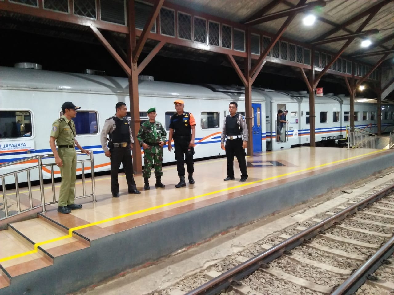 Polsek Cepu bersama anggota TNI lakukan patroli gabungan di Stasiun Besar Cepu, Sabtu (9/6/2018) malam. Kegiatan patroli dan pengamanan ini bertujuan untuk menjaga situasi kamtibmas agar tetap aman dan kondusif selama pelaksanaan Mudik Lebaran di wilayah Cepu, serta untuk memberikan pelayanan kepada masyarakat, sehingga masyarakat dapat merasa aman dan nyaman dalam melaksaanakan aktivitasnya di lingkungan Stasiun.